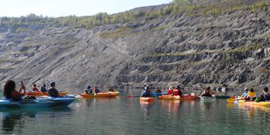 Cette visite guidée d’environ 2 heures en kayak sur le lac de la mine Jeffrey raconte l’histoire de la mine en ajoutant des notions environnementales, d’écotourisme et de biodiversité.